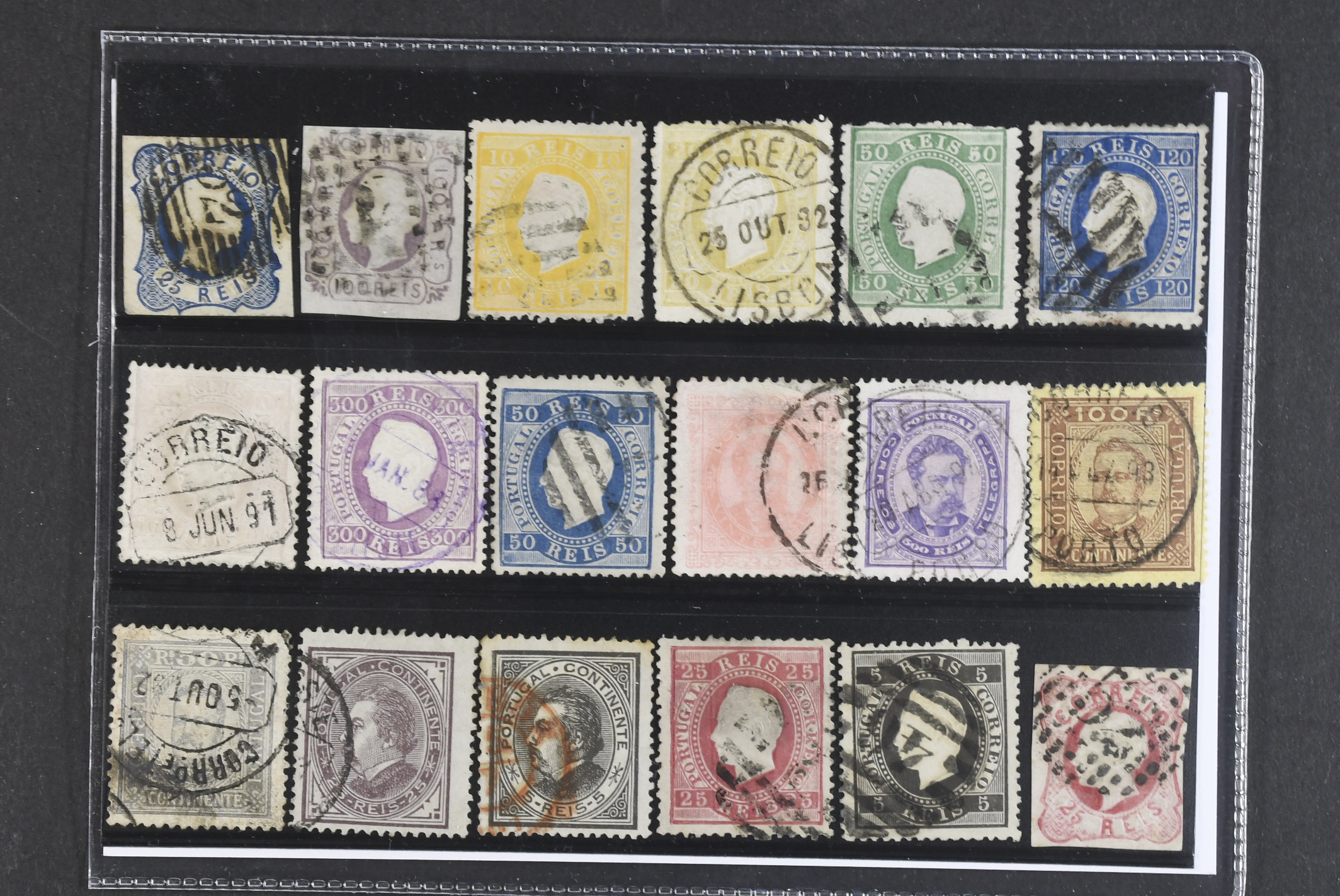 Portugal. Used 1856–1892. All different, e.g. Mi 10, 16, 35, 37,39, 41-42, 45, 48, 62, 64B. Mostly good quality. Mi € 672 (18)
