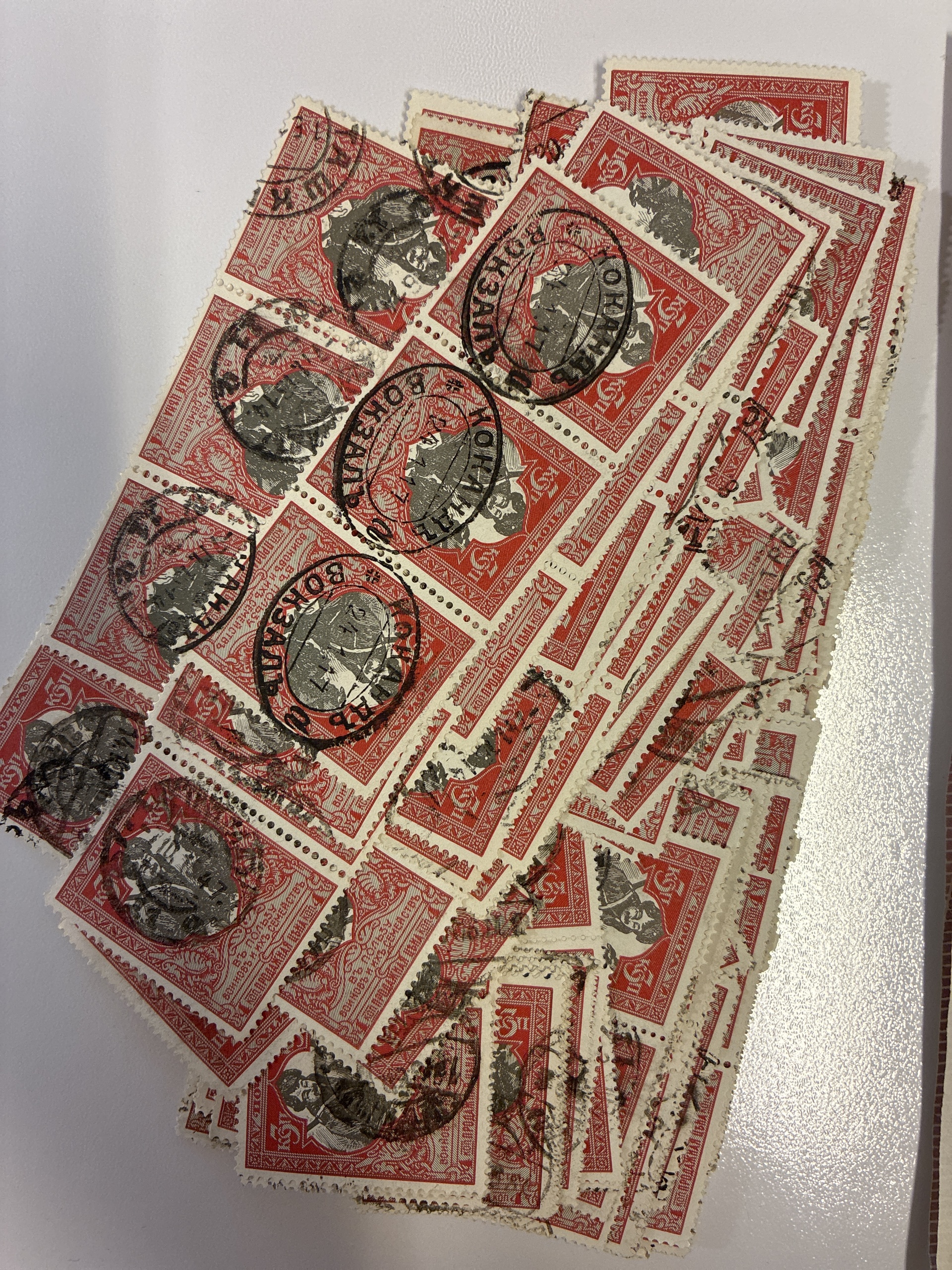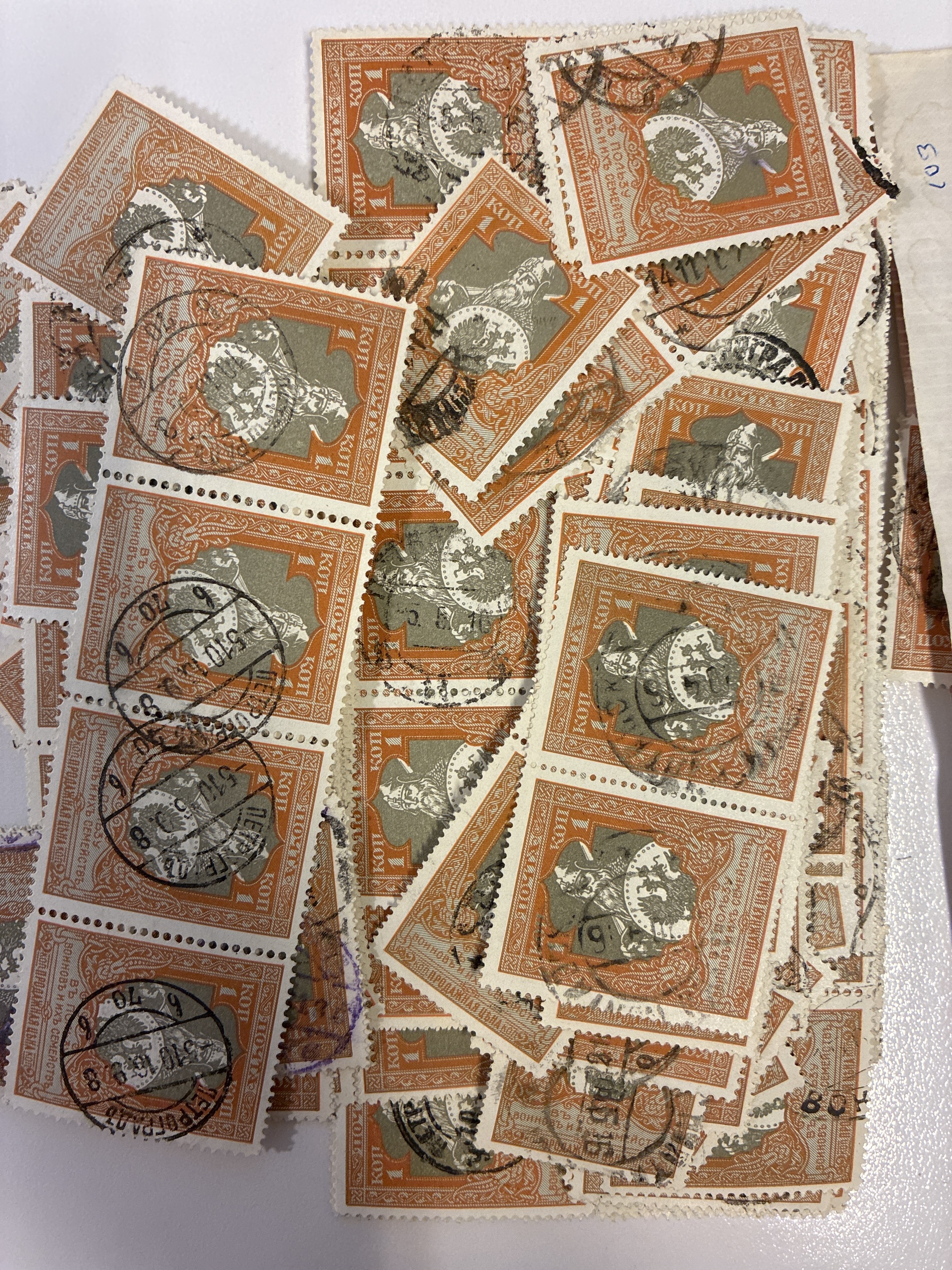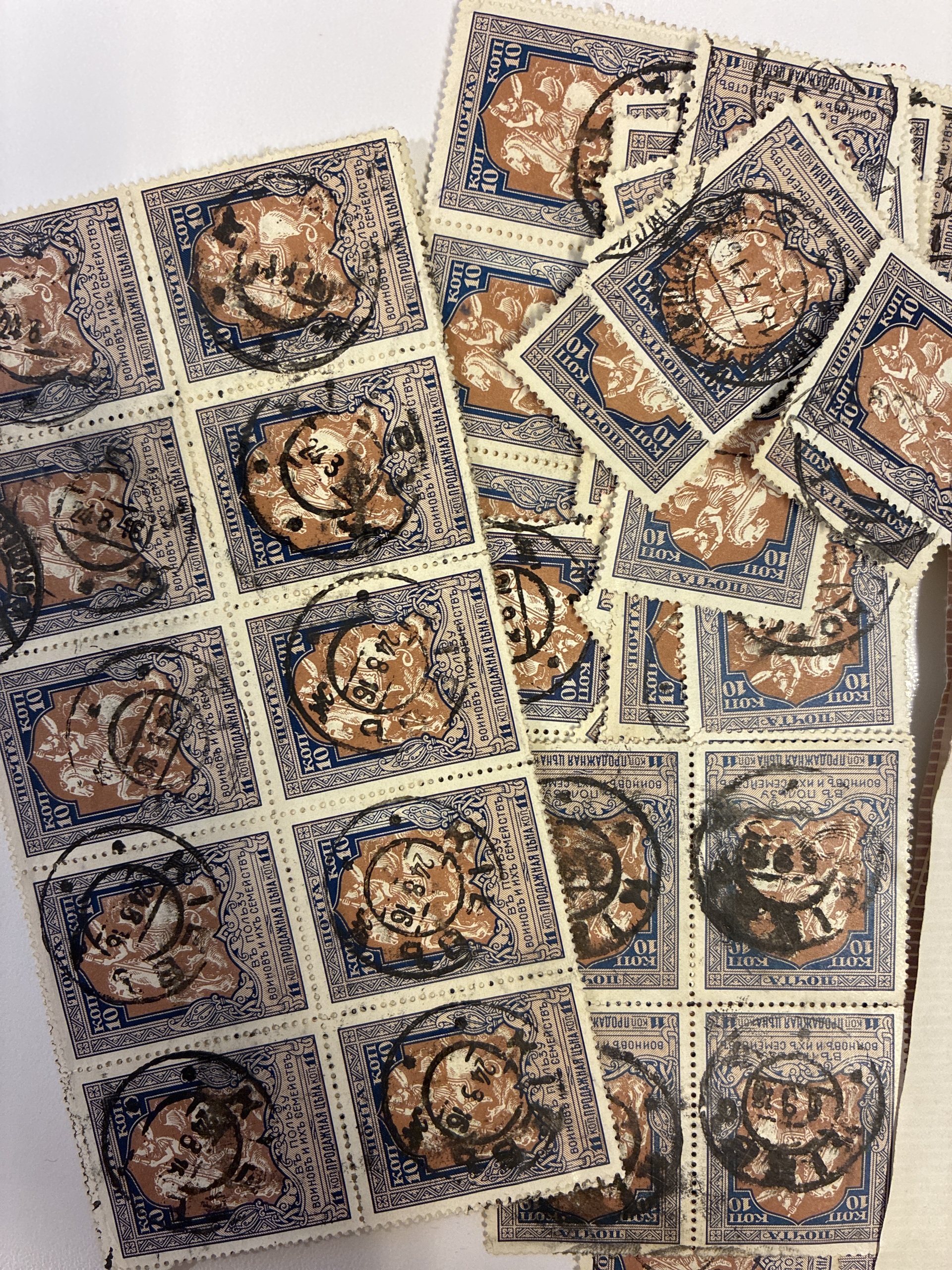 Russia. Accumulation used 1915 in envelopes. War aid stamps 1, 3 and 10 K white papper. Please see a selection of scans at www.philea.se. Mostly good quality. (>1000)