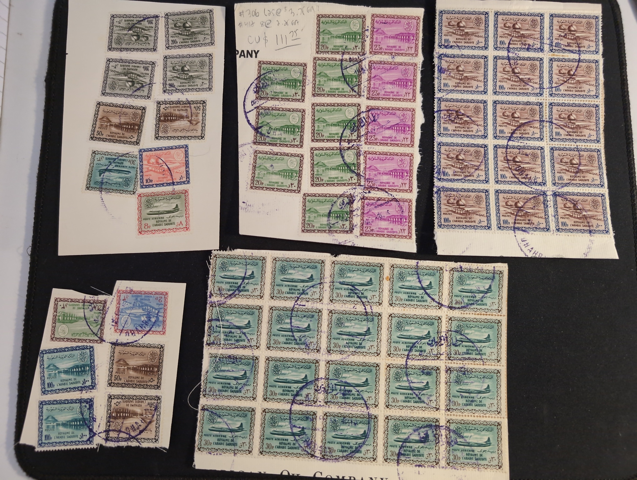 Saudi Arabia. Accumulation ★★/⊙ 1960s–1980s on stock cards. Stockcard with used, some better used on paper and the Solar energy souvenir sheet set. The entire lot is presented at www.philea.se. The entire lot is presented at www.philea.se. Mostly fine quality. (130+)