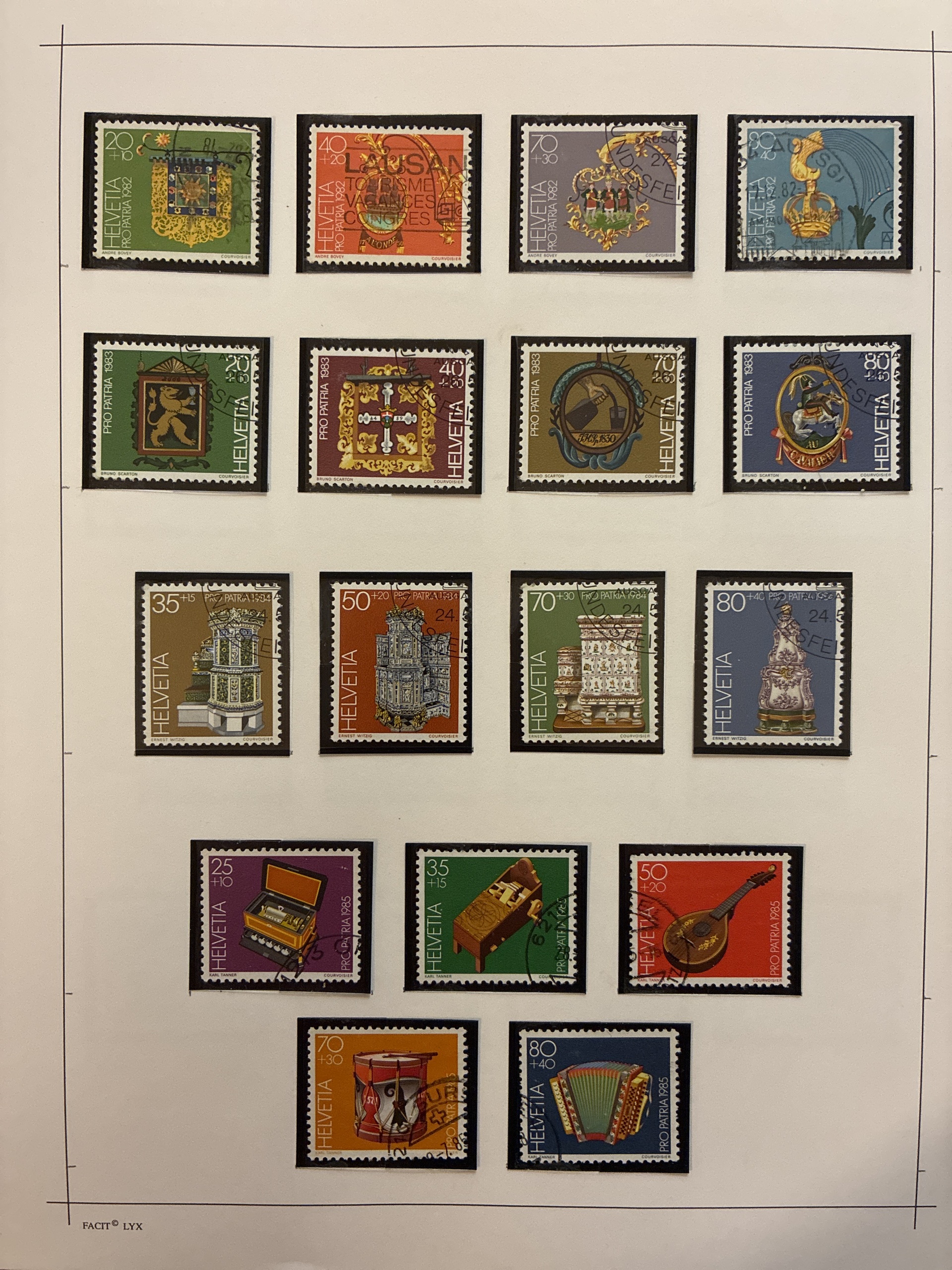Switzerland, Mixed. Collection used 1854–2003 in album. Two visir leaves with older stamps and then from 1940–2003. Please see a selection of scans at www.philea.se. Mostly good quality. (900)