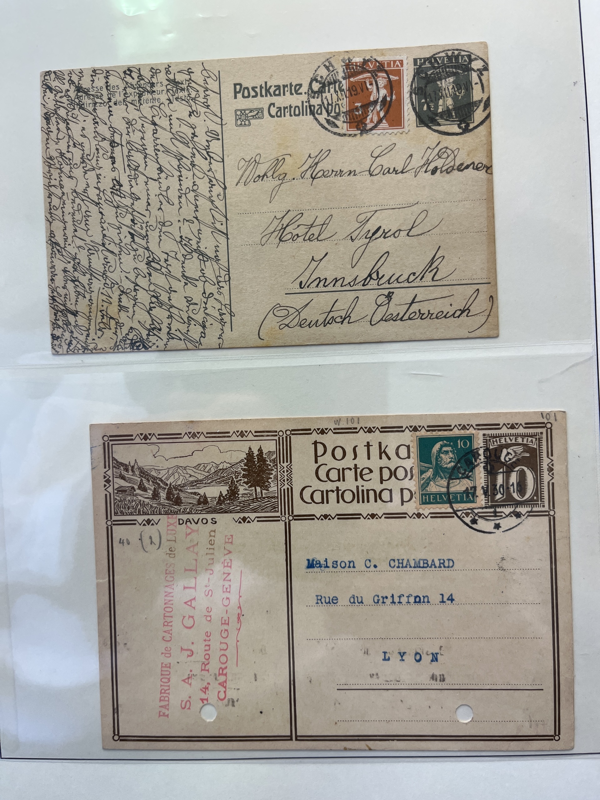 Switzerland, Mixed. Lot covers ca. 1900–1925 in album. Most postal stationery and postcards. (ca. 115)