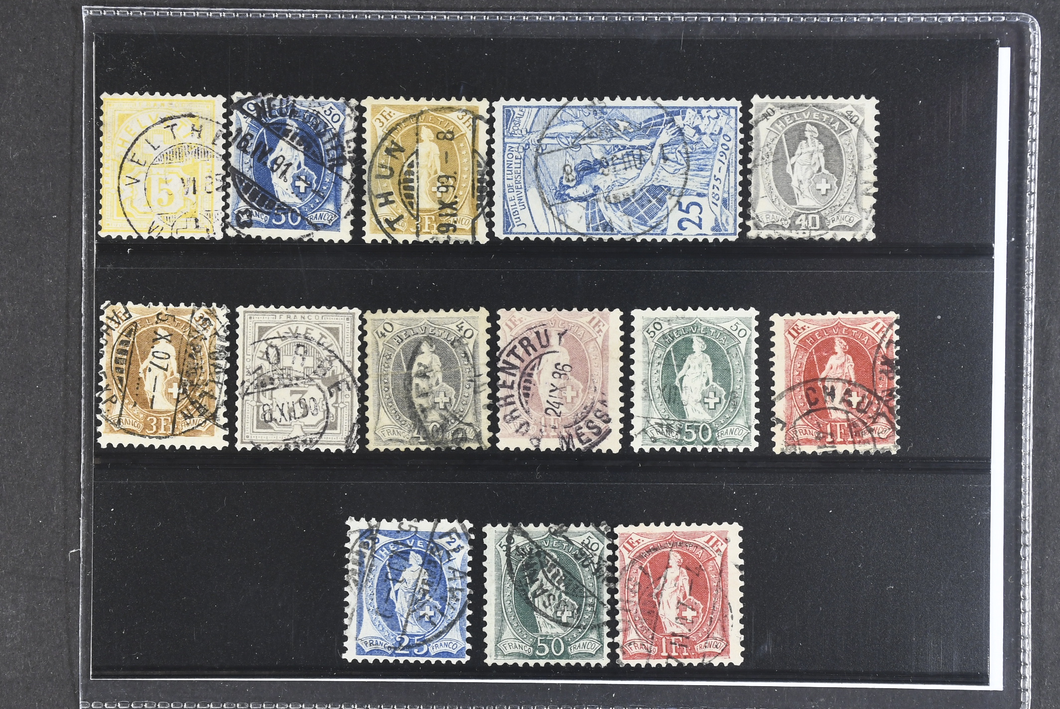 Switzerland. Used 1882–1905. All different, e.g. Mi 56, 62, 64, 73, 77C (ABT BPP-signed), 80C(ABT BPP-signed). Mostly good quality. Mi € 747 (14)