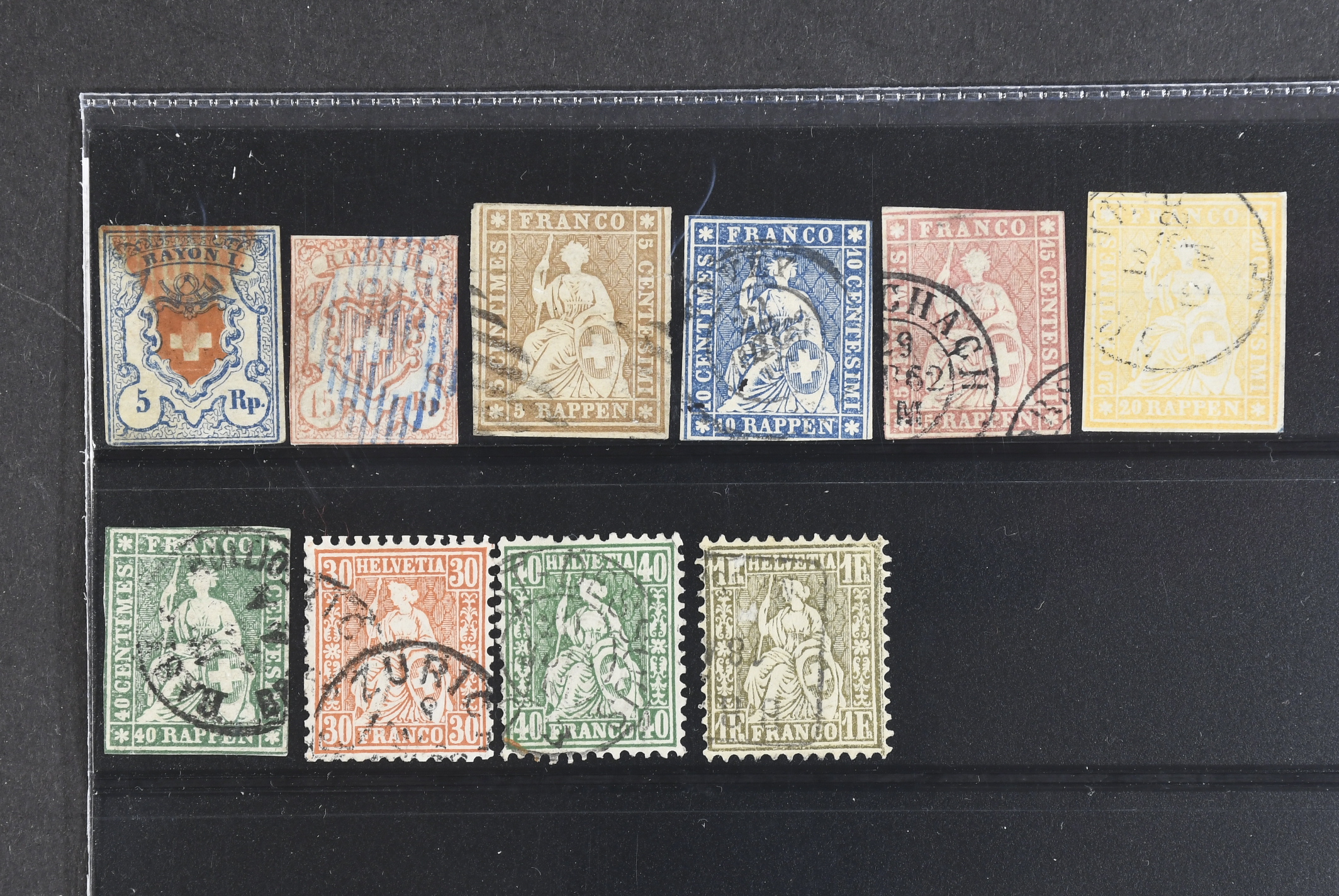 Switzerland. Used 1850–1862. All different, e.g. Mi 9 II, 12, 13-17 II, 25-26, 28. Mostly good quality. Mi € 680 (10)