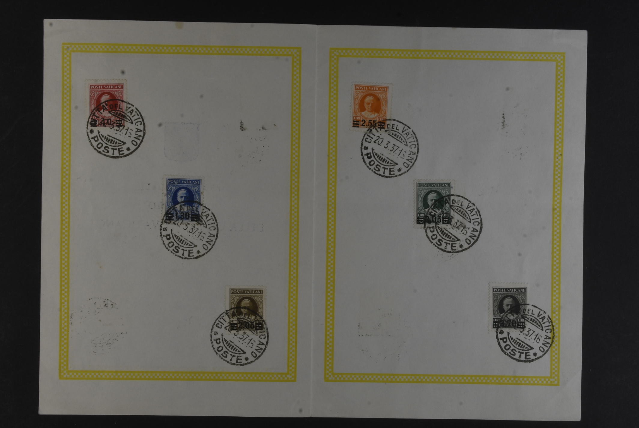 Vatican. Michel 39–44 used, 1934 Pope Pius XI new value overprint SET (6). In special leaf, all cancelled 20.3.37. EUR 1200