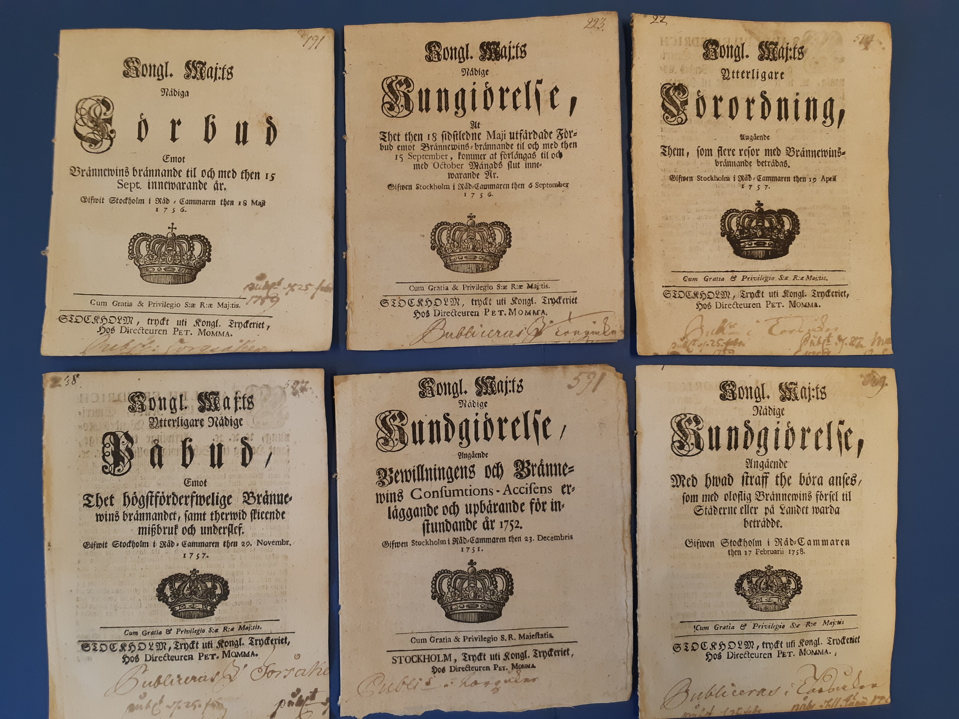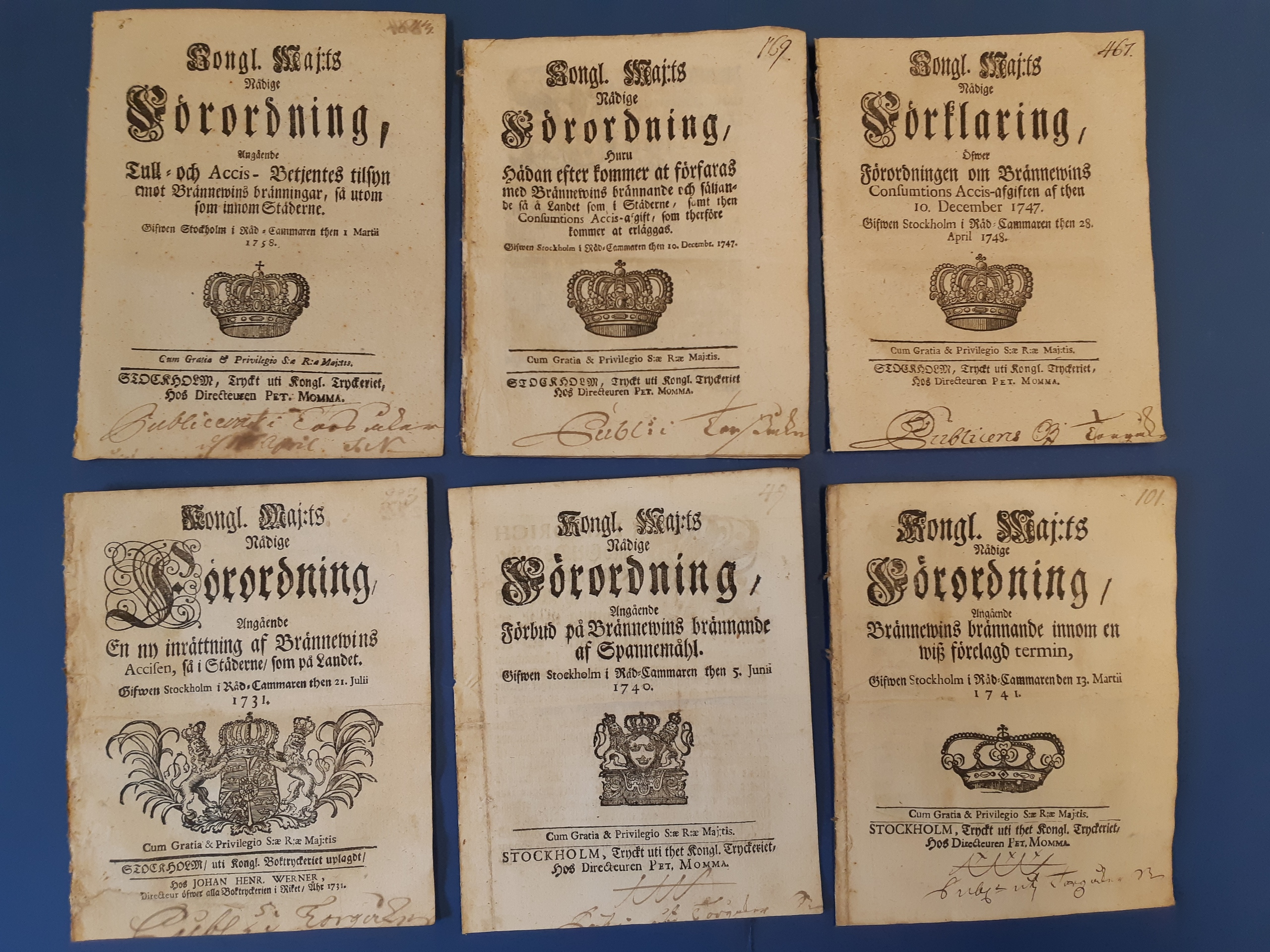 Literature. 19 announcements about spirits, 1731–1793, all with notes about being read and a few with crown mail coils. The entire lot is presented at www.philea.se.
