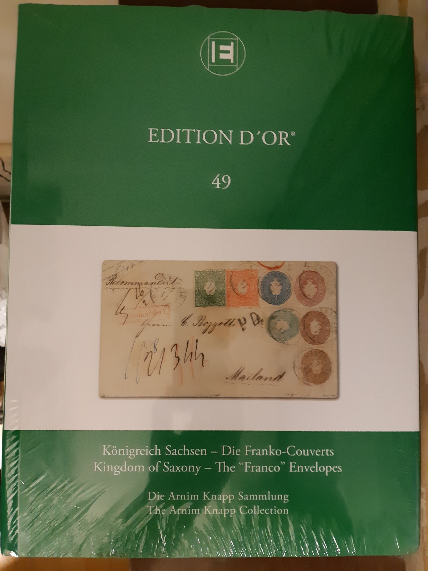 Literature, Saxony. EDITION D'OR, Vol. 49 'Kingdom of Saxony The 'Franco'-Envelopes – The Arnim Knapp Collection', The Global Philatelic Network, 2017. The Large Gold awarded exhibit depicted in its entirety, hardcover, with dust jacket, 260 pp., introduction bilingual English/German. New, still wrapped in plastic.