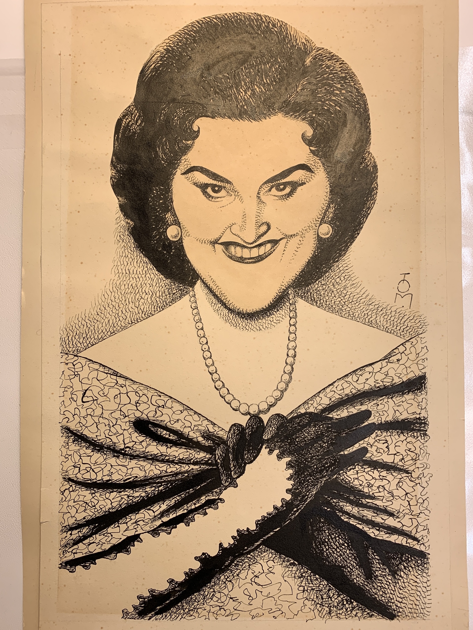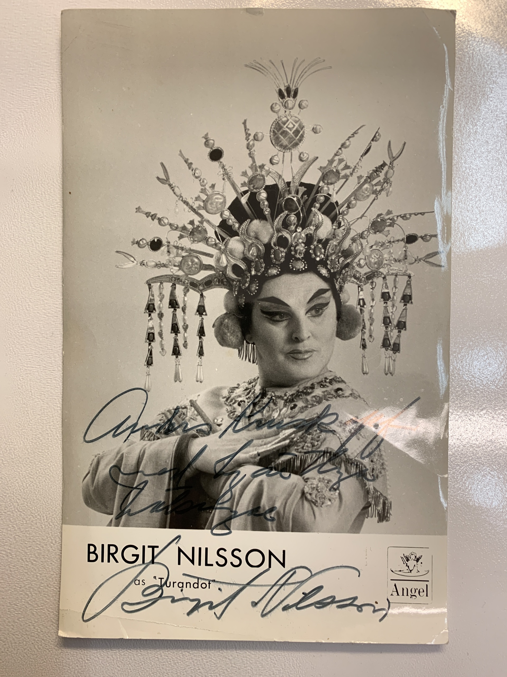 Autographs. BIRGIT NILSSON (1918–2005). Swedish dramatic soprano. Elegant ink drawing, 22.5 x 34 cm + Signed photo with Birgit Nilsson as "Turandot".