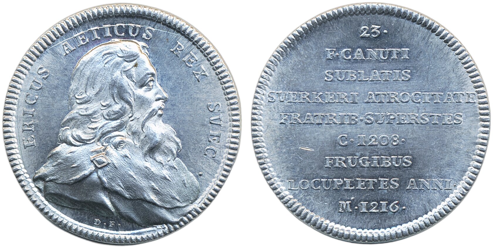 Medals, regal, Sweden. Hild. 23, Hedlingers regentlängd (Hedlinger's set of regents) Erik Knutsson No 23. Aluminium medal, by Daniel Fehrman, 33 mm, 4.24 g. RRR. SKM 23e. 01/0.