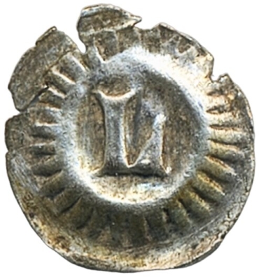 Coins, Sweden. Magnus Eriksson, LL XXVIII:2a, 1 penning ND. 0.30 g. Lödöse. Bracteate with L within rayed circle. Minor planchet cracks. SMB 223. 1+.