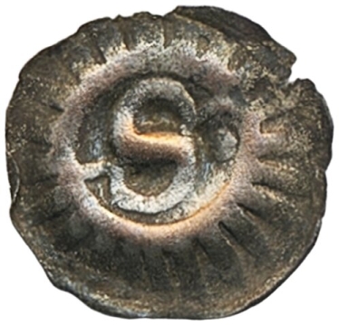 Coins, Sweden. Magnus Eriksson, LL XXVIII:3b, 1 penning ND. 0.16 g. Söderköping. Bracteate with S within rayed circle, dot forward of S. Minor planchet crack. SMB 227. 1.