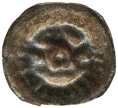 Coins, Sweden. Magnus Eriksson, LL XXVIII:4c, 1 penning ND. 0.25 g. Stockholm. Crown with dots on side inside rayed circle. Scarce. SMB 232. 1/1+.