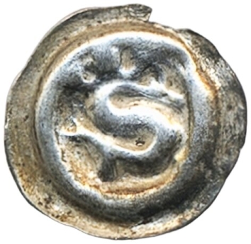 Coins, Sweden. Albrekt av Mecklenburg, LL XXXIII:2a, 1 penning ND. 0.24 g. Söderköping. Bracteate, crowned S inside plain circle. Minor edge loss, reverse verdigris. SMB 292. 1+.