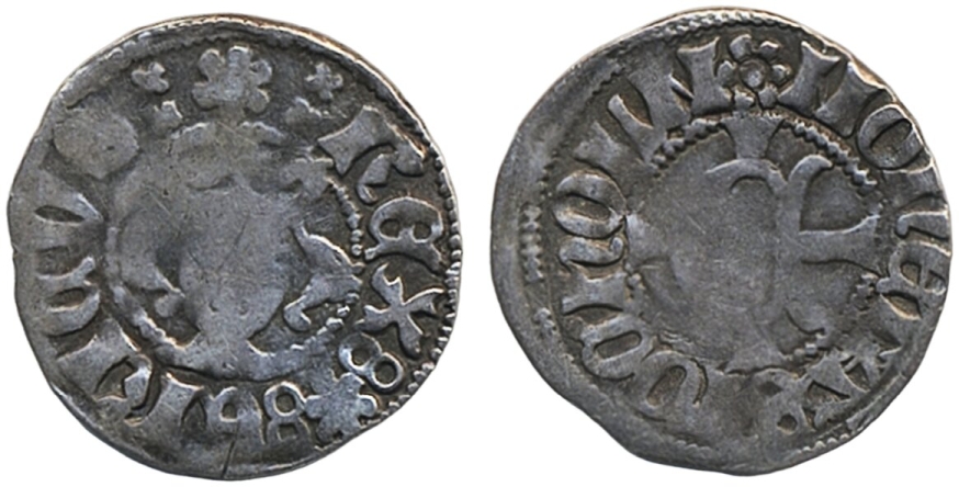 Coins, Sweden. Erik av Pommern, LL 1b, 1 örtug ND. 1.13 g. Stockholm. Forward facing portrait, ERICVS REX)(HONETA STOCHOLM, E on cross with straight edges. Weakly struck. SMB 297. 1.