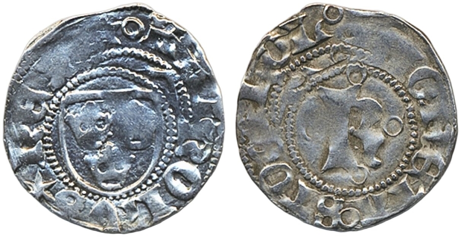 Coins, Sweden. Karl Knutsson Bonde, LL 1b, 1 örtug ND. 0.95 g. Stockholm. Three crowns in shield, KAROLVS REX)(HONETA STOCHOL, K with curved ends and four circles. Lightly cleaned. Double struck. Rundberg 1c. SMB 338. 1/1+.