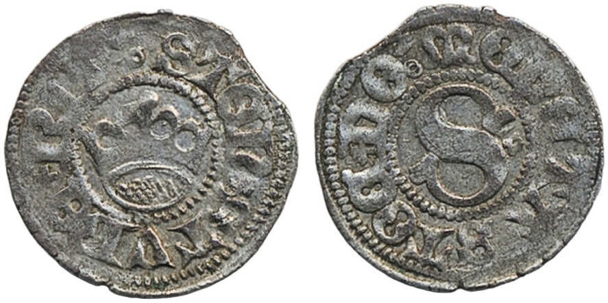 Coins, Sweden. Sten Sture den yngre, LL 9e var, ½ örtug ND. 0.90 g. Stockholm. Crown, STEN+STVRE+RIT)(MONETA+STOC+HO, S with rose at right. Somewhat irregular planchet. SMB 494. 1+.