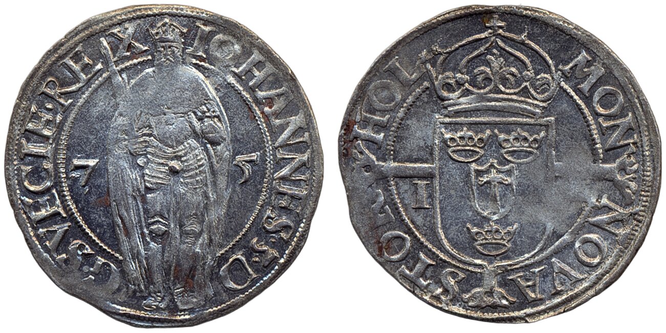 Coins, Sweden. Johan III, SM 81a, 1 öre 1575. 2.81 g. Stockholm. 01.