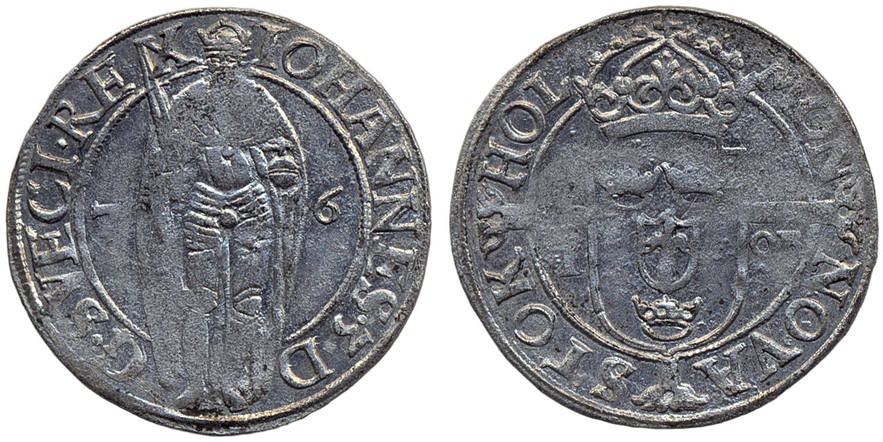 Coins, Sweden. Johan III, SM 82, 1 öre 1576. 2.82 g. Stockholm. Light corrosion. 1+/01.