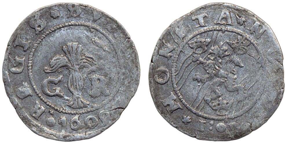 Coins, Sweden. Karl IX, SM 75a, 1 öre 1609. 1.47 g. Stockholm. 1+.