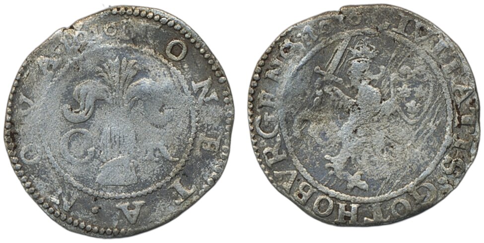 Coins, Sweden. Karl IX, SM 92b, 1 öre 1610/1010. 1.34 g. Göteborg. Reverse with date "1010" in legend. Cleaned, lighly bent. RRR. 1?/1.