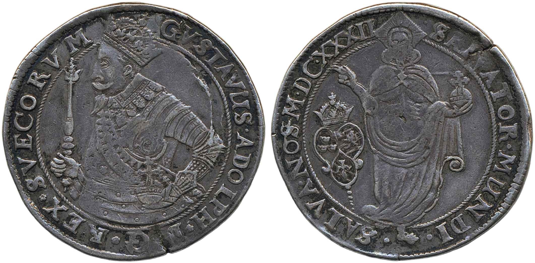 Coins, Sweden. Gustav II Adolf, SM 38b, 1 riksdaler 1632. 28.28 g. Stockholm. Partly weakly struck, planchet flaws, polished. 1/1+.
