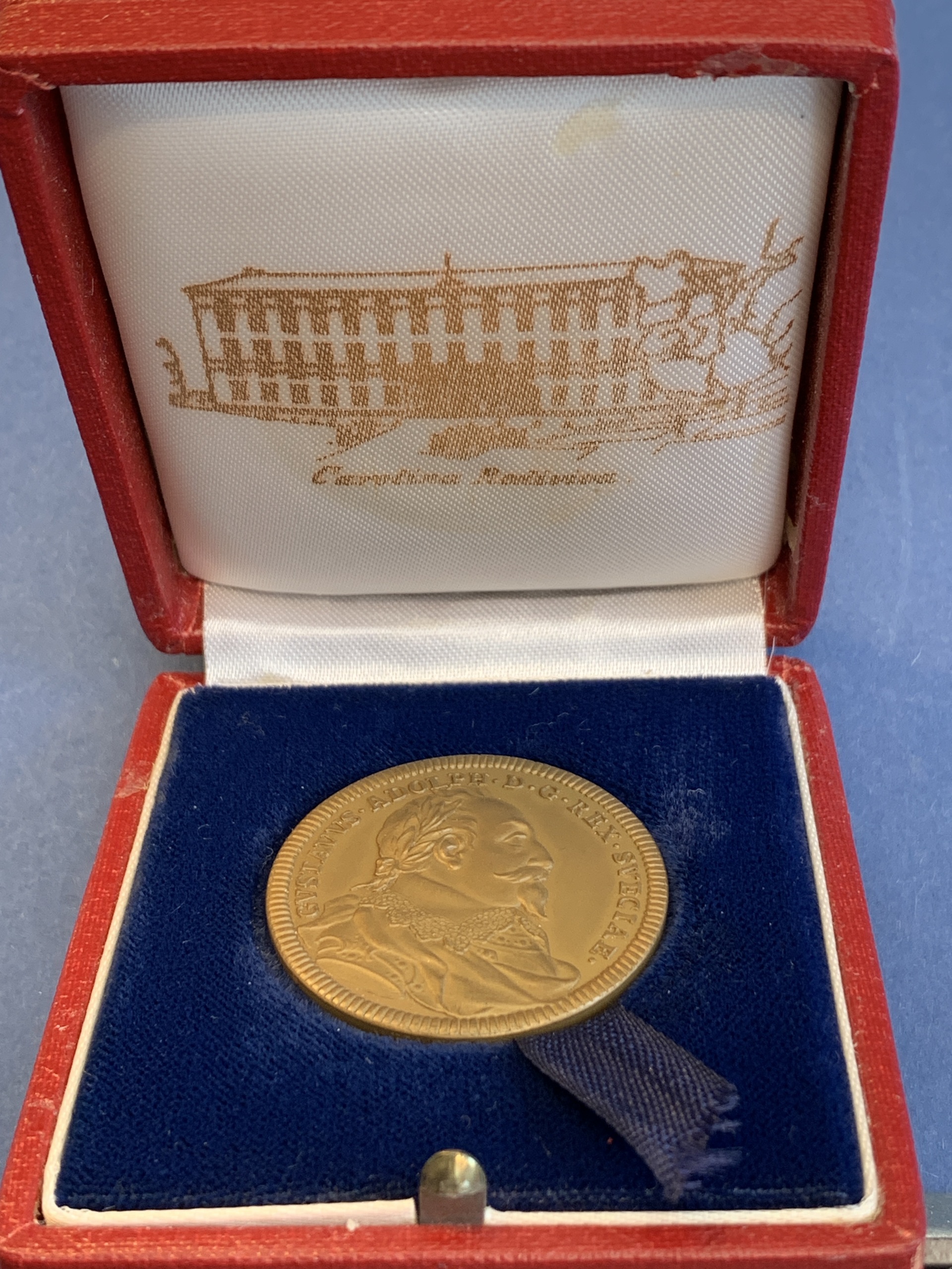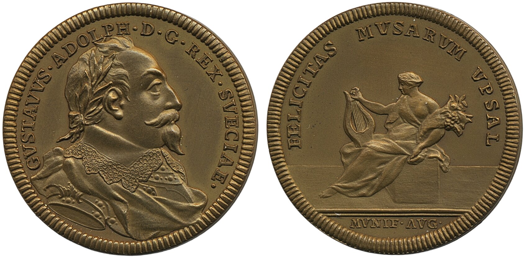 Medals, regal, Sweden. Gustav II Adolf, Hild. 9, Royal Gustav Adolf Academy. Reward medal in bronze (struck 1974), 34 mm, 19.4 g., by J.C. Hedlinger. Beautiful case. Felder 138, SKM 10 d. 01/0.