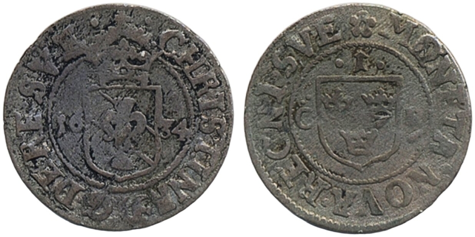 Coins, Sweden. Kristina, SM 85, 1 öre 1634. 0.98 g. Stockholm. 1/1+.