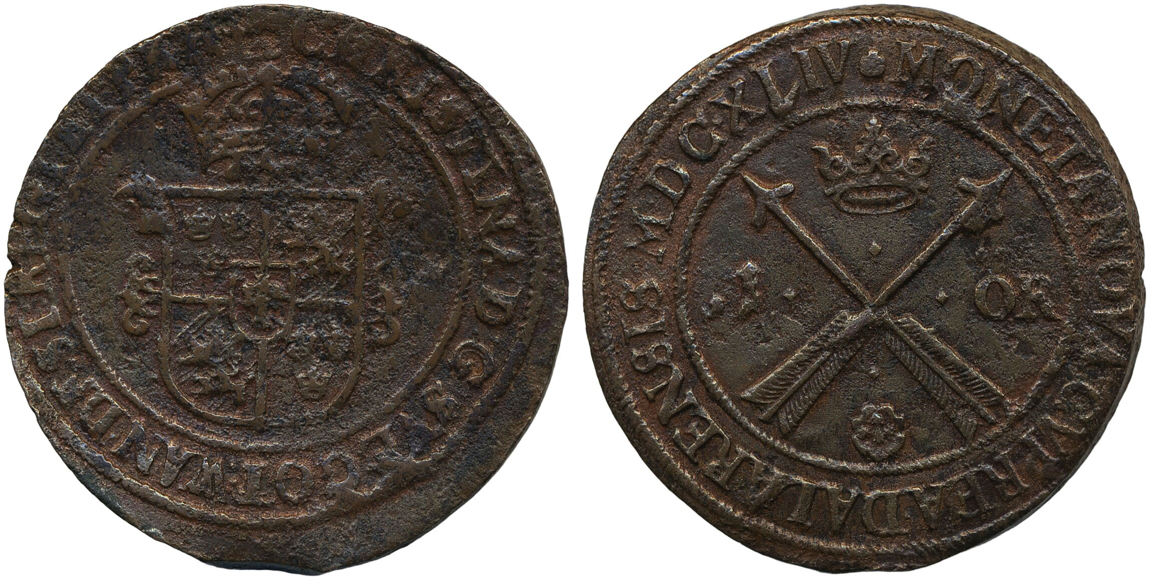 Coins, Sweden. Kristina, SM 118a, 1 öre 1644. 49.97 g. Avesta. Some corrosion. Säter style crown. 1)(1+.