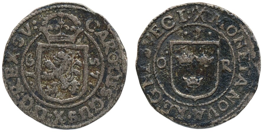 Coins, Sweden. Karl X Gustav, SM 31, 1 öre 1657. 1.16 g. Stockholm. 1+.