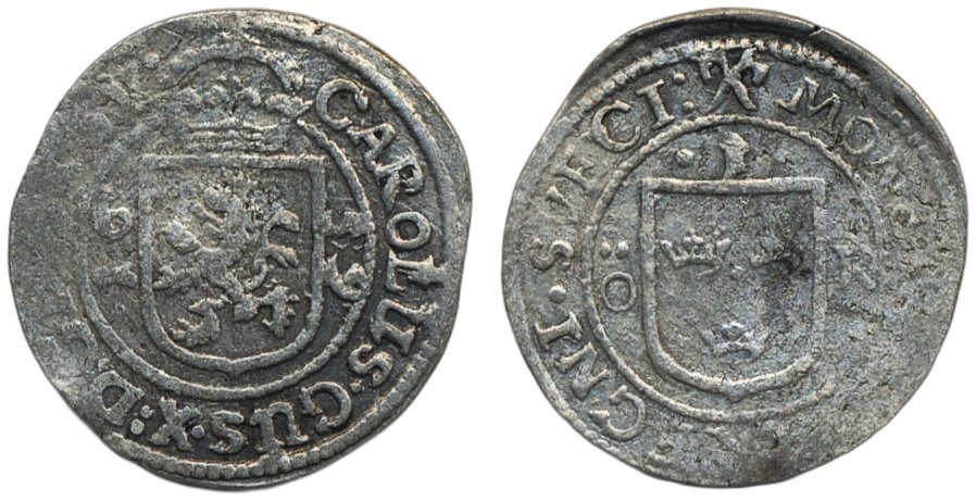 Coins, Sweden. Karl X Gustav, SM 32a, 1 öre 1659. 1.10 g. Stockholm. RR. 1/1+.
