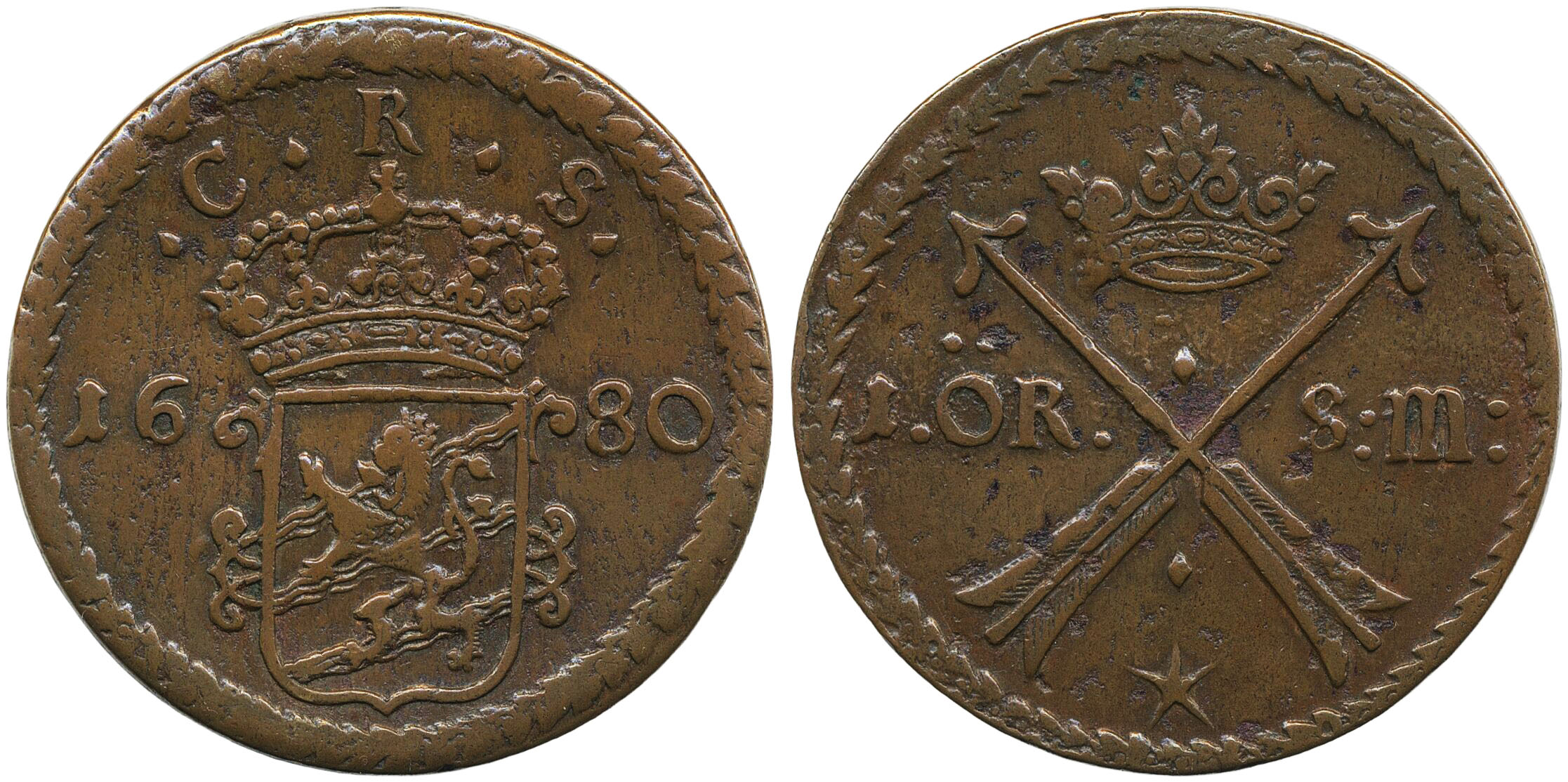 Coins, Sweden. Karl XI, SM 359, 1 öre SM 1680. 40.87 g. Avesta. 1/1+.