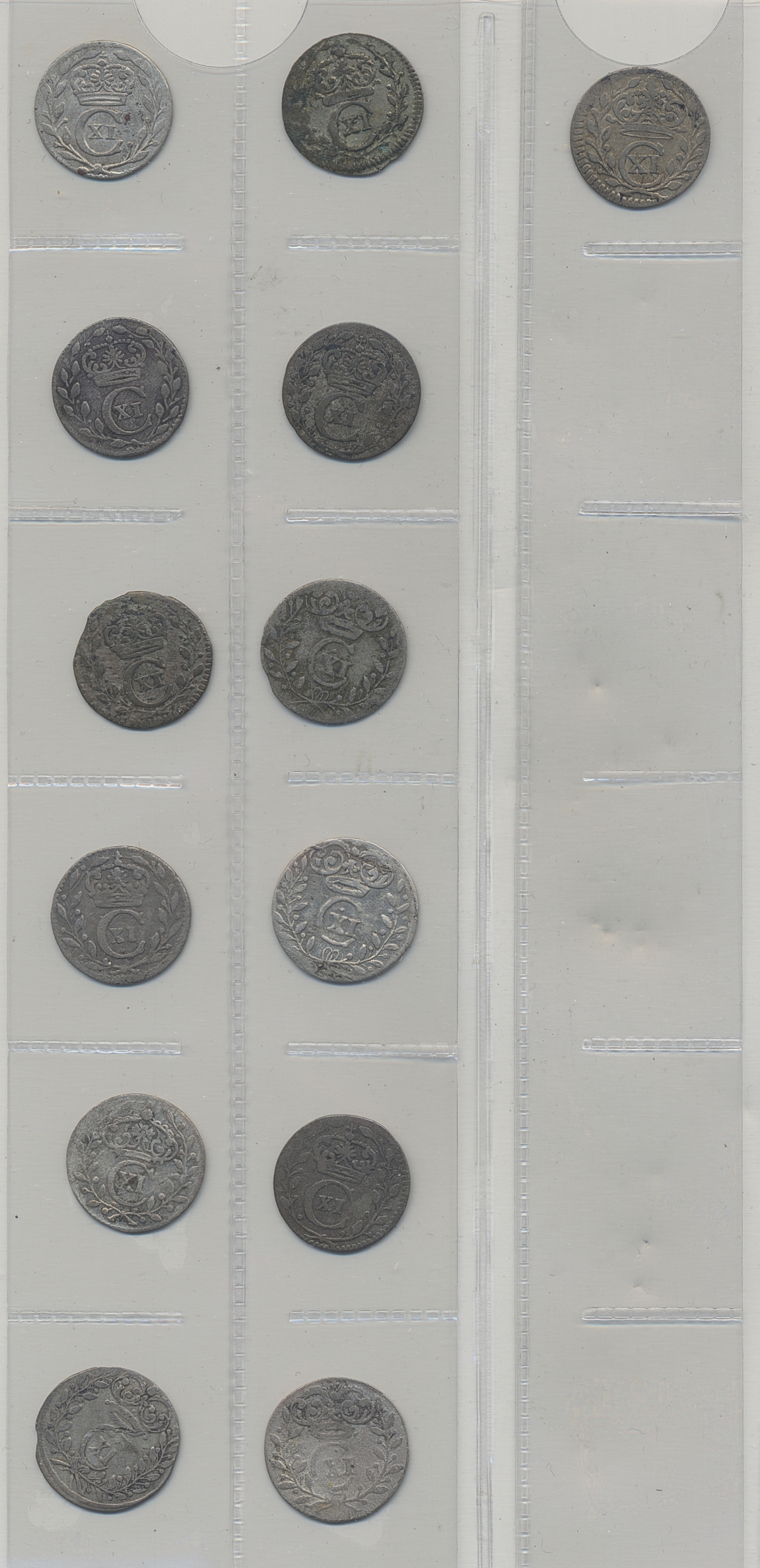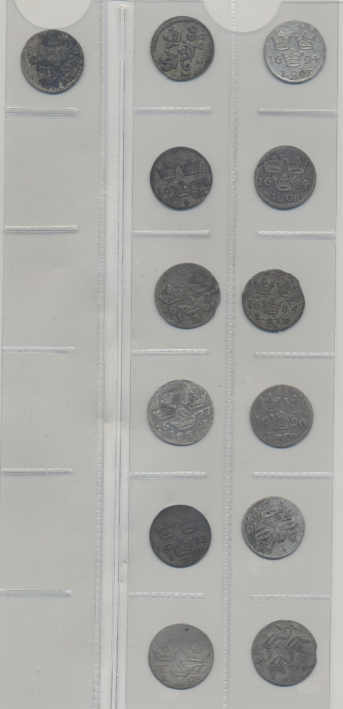 Coins, Sweden. Karl XI, Lot of 13 pcs of 1 öre coins, mostly different dates. Perfect for the collector of varieties. Please inspect! 1?-1+.