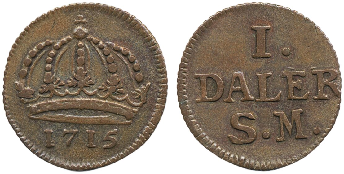 Coins, Sweden. Karl XII, SM 214, 1 daler SM 1715. 3.22 g. Stockholm. 1+.