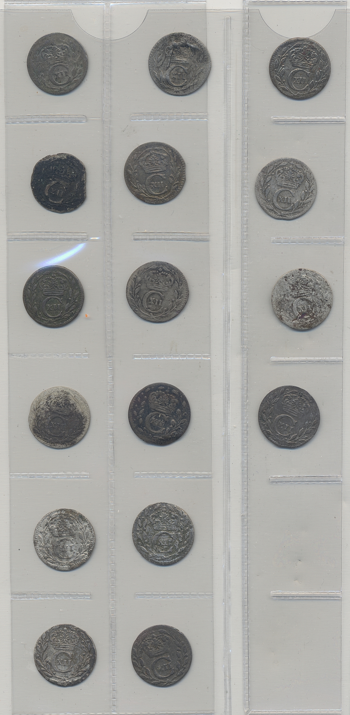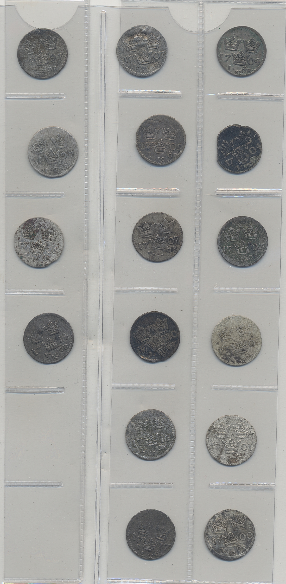 Coins, Sweden. Karl XII, Small lot of 1 öre, in total 16 pcs. Mixed condition. Please inspect! 1?-1+.