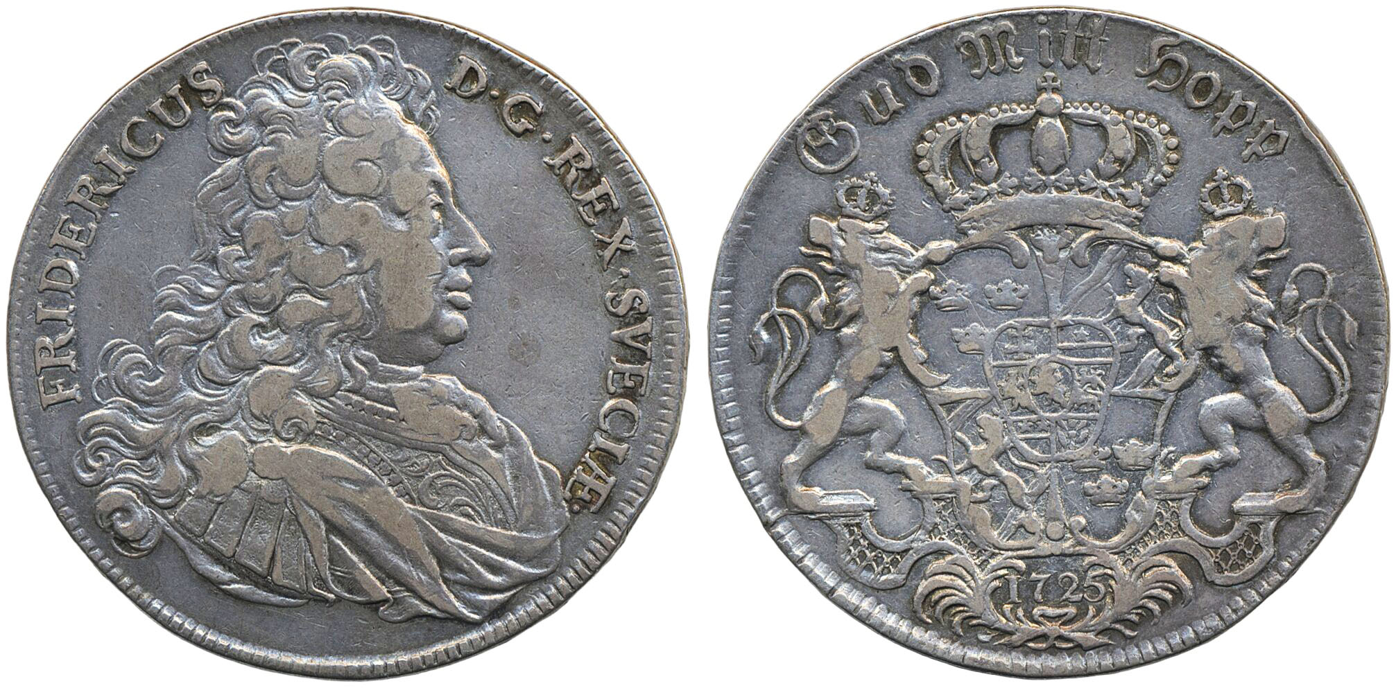 Coins, Sweden. Fredrik I, SM 64, 1 riksdaler 1725. 28.83 g. Stockholm. 1/1+.