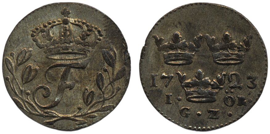 Coins, Sweden. Fredrik I, SM 160a, 1 öre 1723 GZ. 1.25 g. Stockholm. Minor edge flaw. 01.