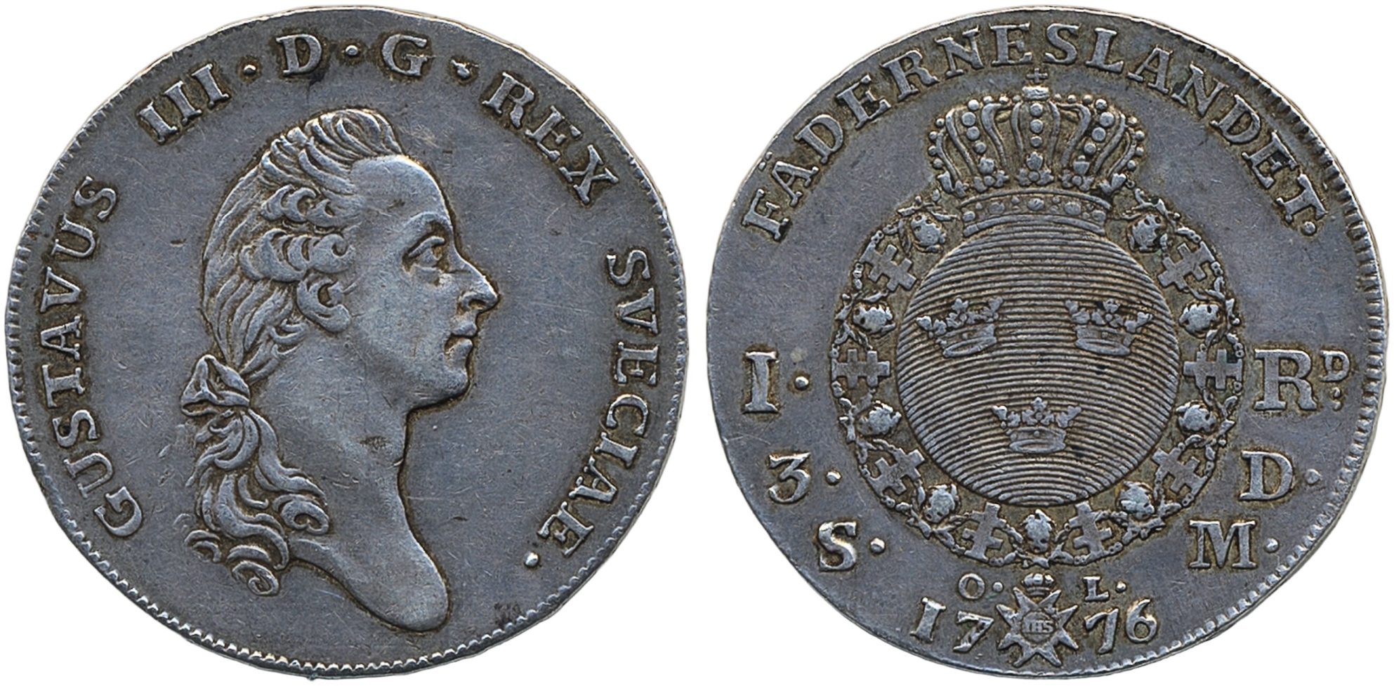 Coins, Sweden. Gustav III, SM 43, 1 riksdaler 1776. 29.22 g. Stockholm. SMB 13. 1/1+.