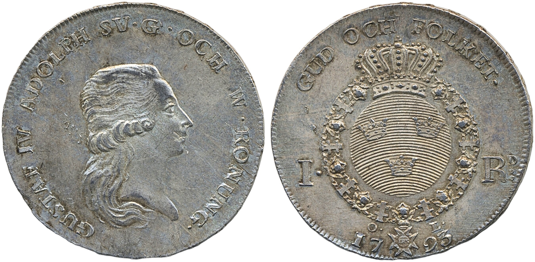 Coins, Sweden. Gustav IV Adolf, SM 22, 1 riksdaler 1793. 29.35 g. Stockholm. Minor adjustment marks, has probably been mounted, preserved lustre in fields. 01.