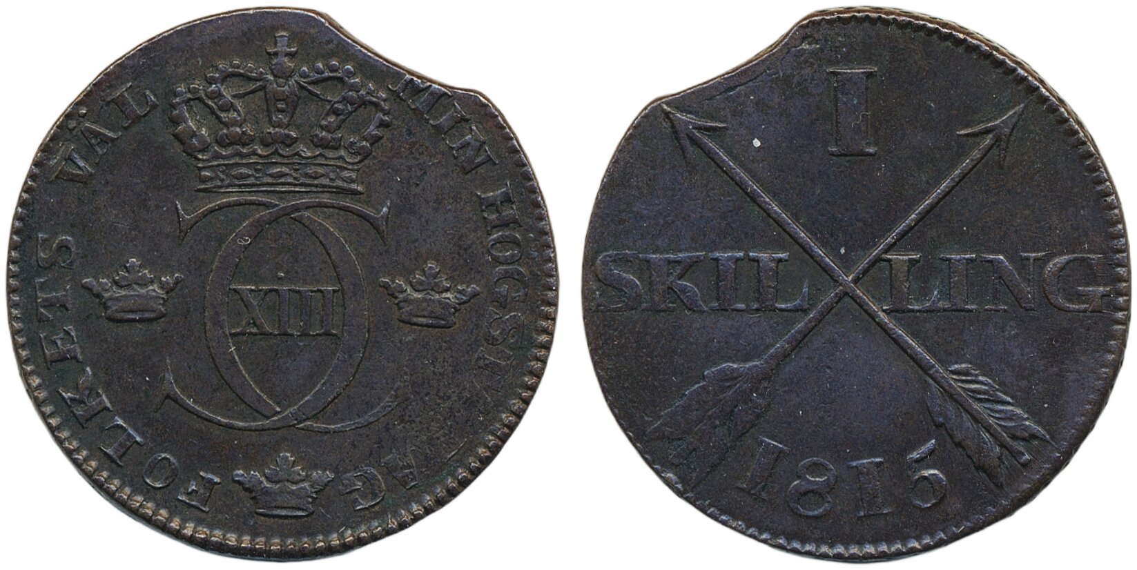Coins, Sweden. Karl XIII, SM 37, 1 skilling 1815. 28.16 g. Avesta. 1+/01.
