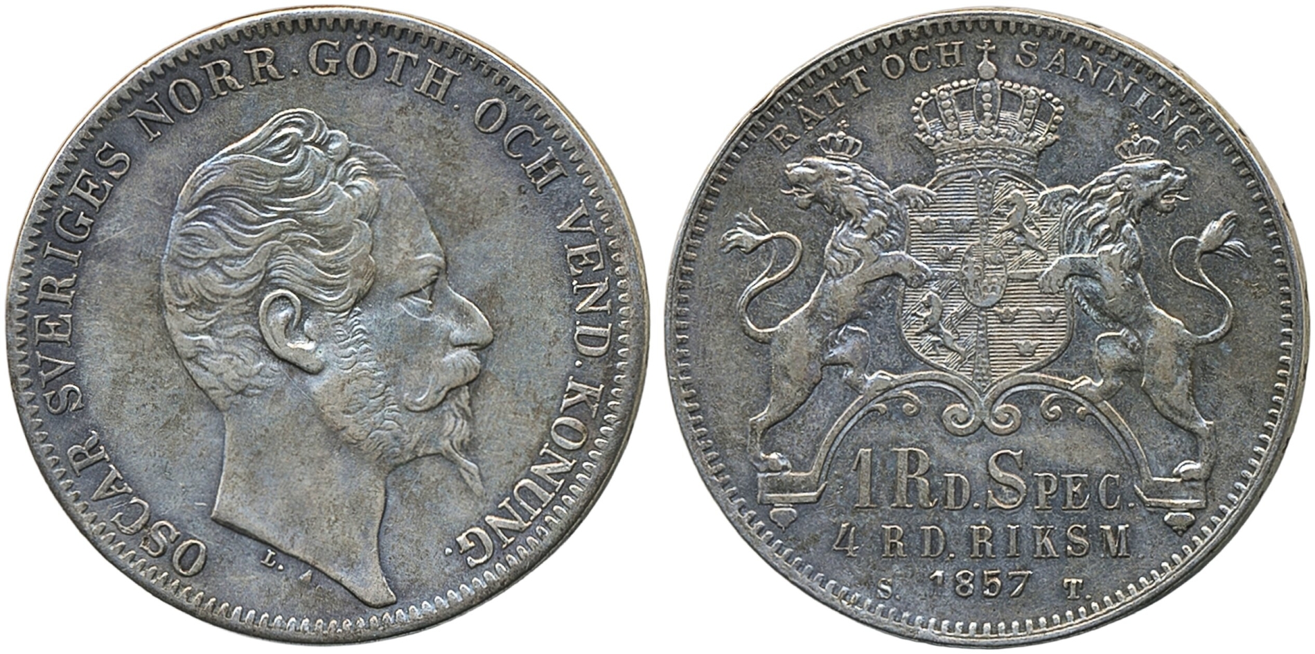 Coins, Sweden. Oskar I, SM 57, 4 riksdaler riksmynt 1857. 1+.