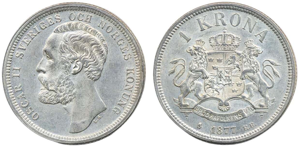 Coins, Sweden. Oskar II, MIS II.1, 1 krona 1877. 01.