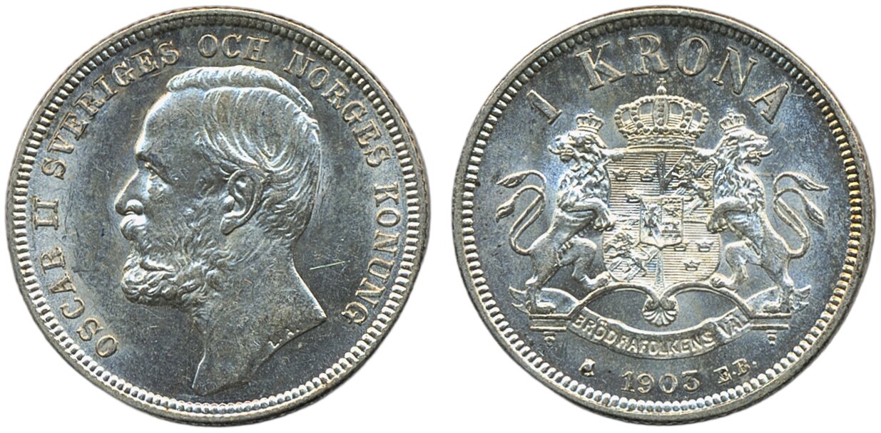 Coins, Sweden. Oskar II, MIS III.8, 1 krona 1903. Good 01.