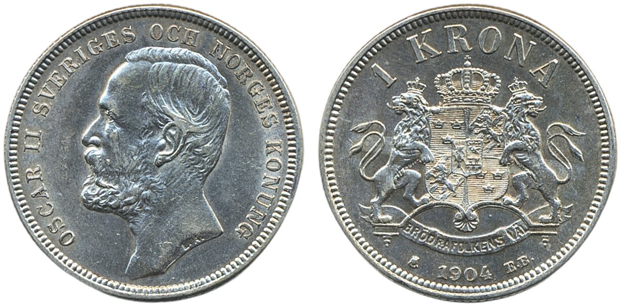 Coins, Sweden. Oskar II, MIS III.10, 1 krona 1904. 01.