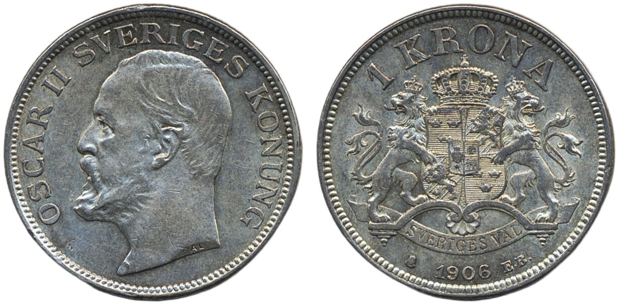 Coins, Sweden. Oskar II, MIS IV.1, 1 krona 1906. 01.