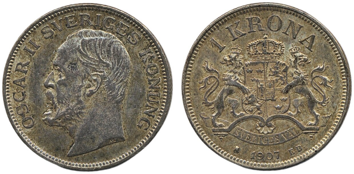 Coins, Sweden. Oskar II, MIS IV.2, 1 krona 1907. 01.