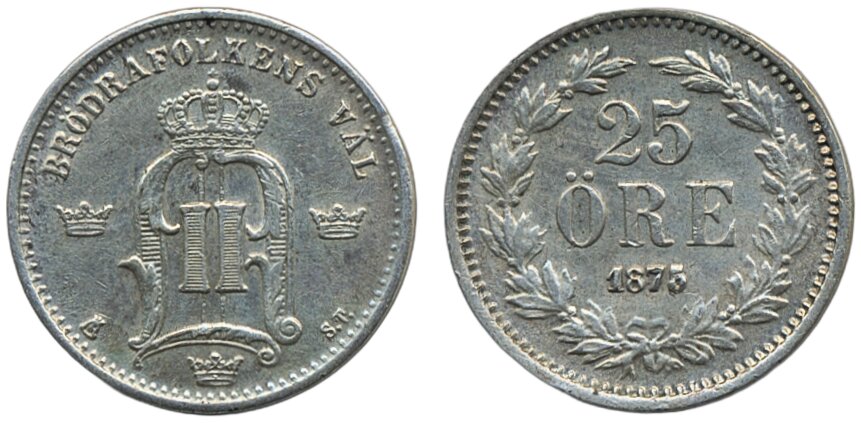 Coins, Sweden. Oskar II, MIS I.3c, 25 öre 1875. 01.
