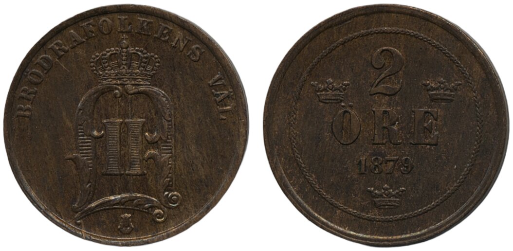Coins, Sweden. Oskar II, MIS II.3a, 2 öre 1879. 01.