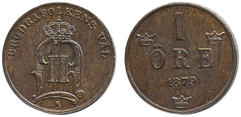 Coins, Sweden. Oskar II, MIS II.3a, 1 öre 1879. 01.