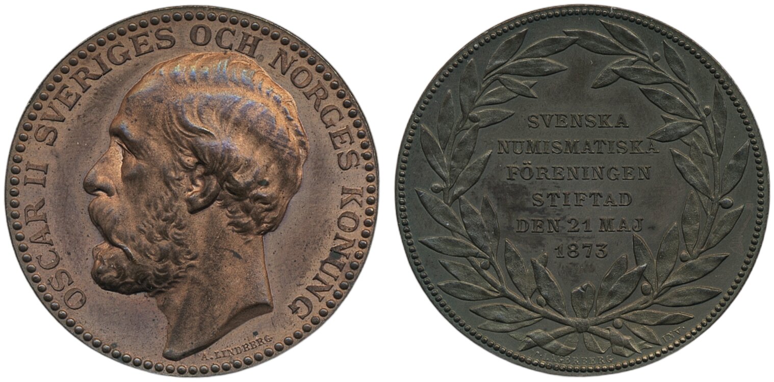 Medals, regal, Sweden. Oskar II, 1873. 11.78 g bronze, Svenska Numismatiska föreningen 1873, SNF 1, A. Lindberg, Ex Misab 13:416. 01/0.