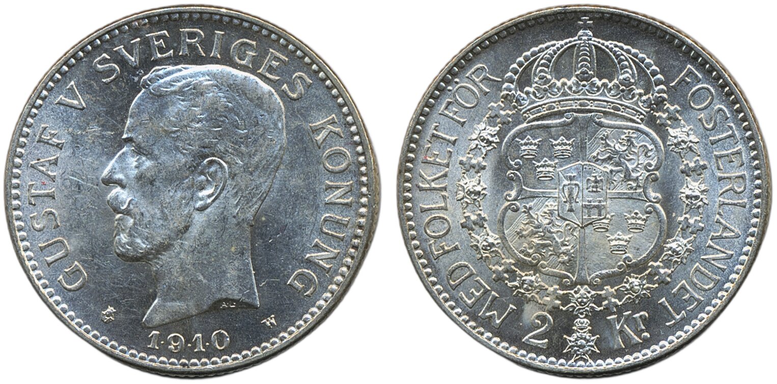Coins, Sweden. Gustav V, SM 4 b, 2 kronor 1910. 01.