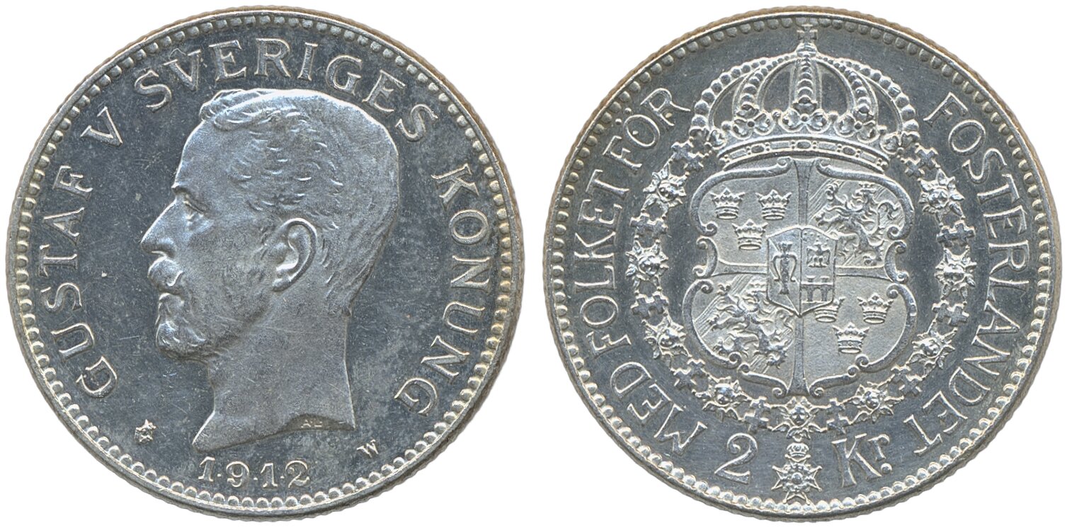 Coins, Sweden. Gustav V, MIS I.3, 2 kronor 1912. Lightly cleaned. 01.
